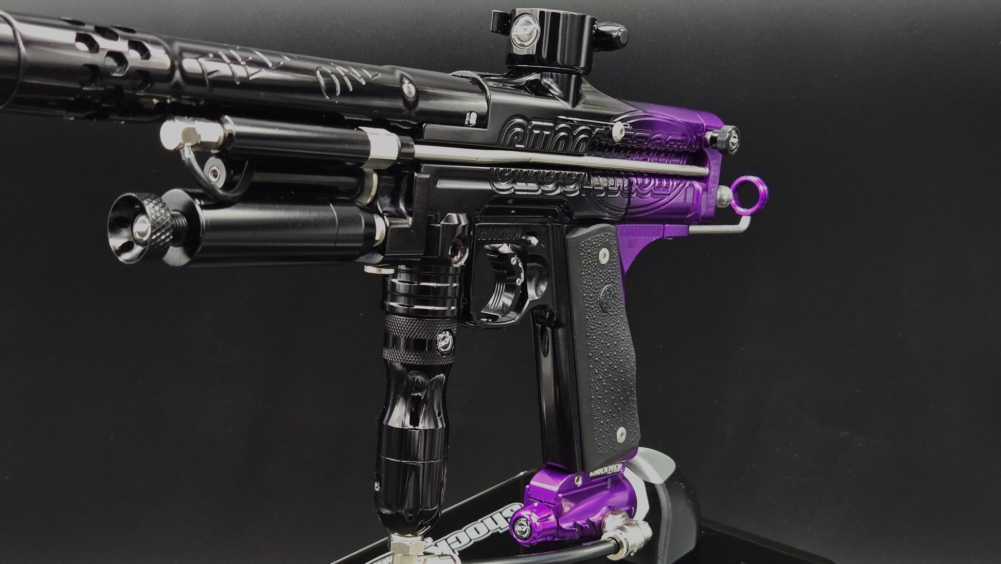 This custom build stands out with premium features engineered for serious performance. The PHAT Rat lower tube provides a solid foundation, while flush 1/8" plugs keep the profile clean and refined. Hogue Palm Swell Grips deliver comfort and control during extended use. The trigger work has been refined to match or exceed competitive standards, and the complete Aftershock F1 barrel kit ensures reliability and accuracy. Every element works together to create a marker that performs at the highest level. Any you get a case made in the USA.